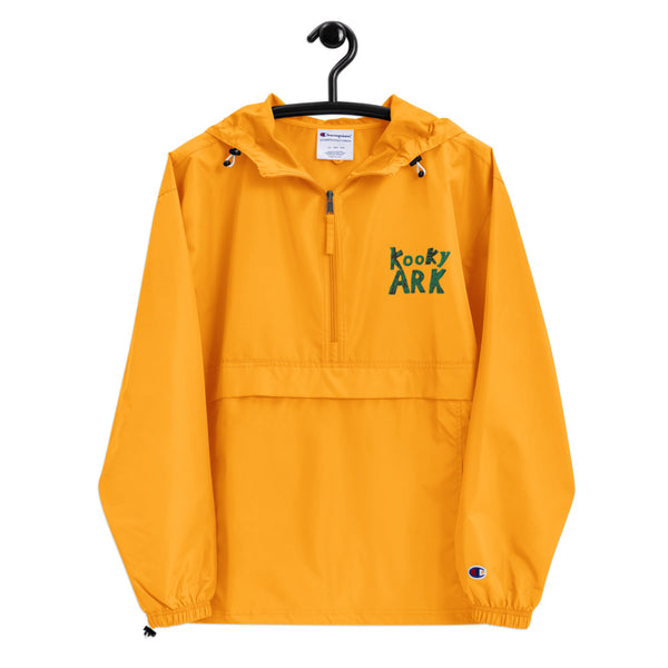 Protect yourself from the elements with this Kooky Ark packable jacket. This wind and rain resistant polyester jacket with a detailed embroidery design has a practical hood, front kangaroo pocket, and zipped pouch pocket which you can pull out and use to scrunch the jacket into for convenient storage.